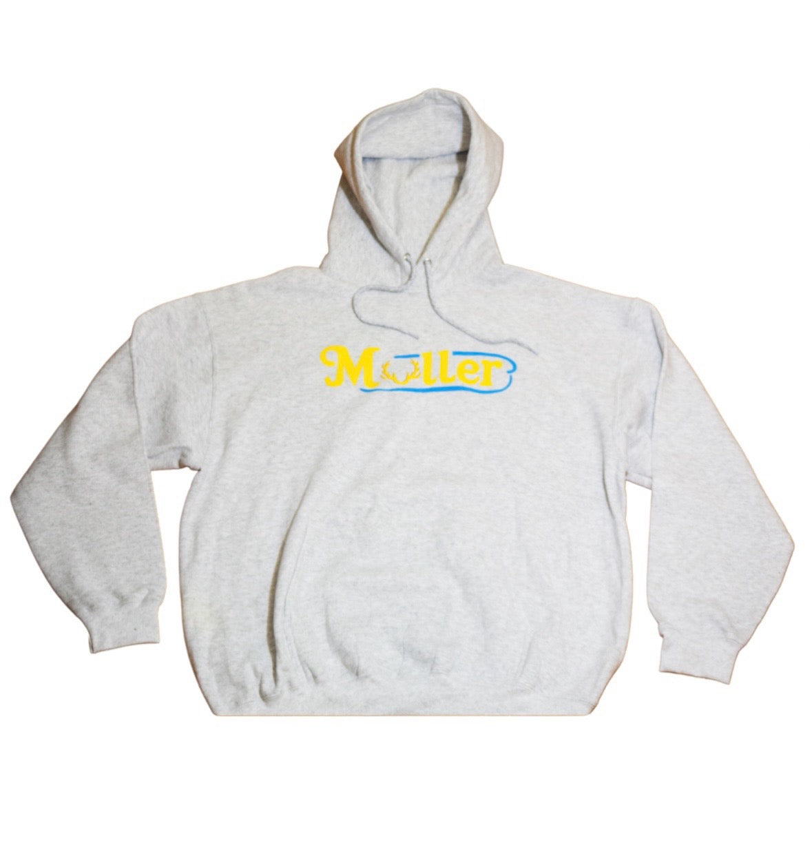 Stay warm in signature style with the Muller Antler Script Hoodie. This soft, heather gray pullover features the bold Muller logo in golden yellow and sky blue, with the signature antler graphic front and center. Designed for comfort and built for everyday wear, it’s perfect for chilly mornings, late-night fires, or layering up in the woods.
